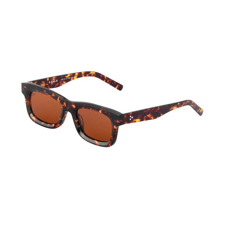 Jubilee blends a chunky frame into a contoured rectangular profile that pairs well with any style. It’s finished with three rivets on each temple and custom-engraved sunburst temple cores.