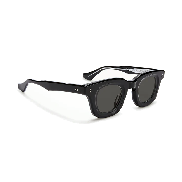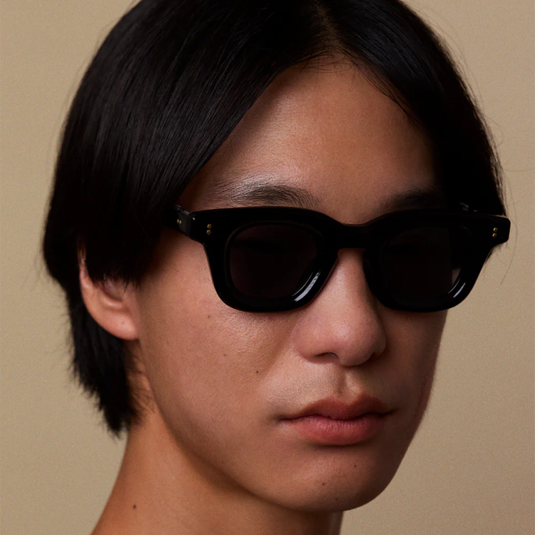 Thick, rounded frames with a straight brow shape, curved nose bridge, extended nose pads. Arm temples crafted with stainless steel core wire. Matching flower metal detailing on frames and temples.