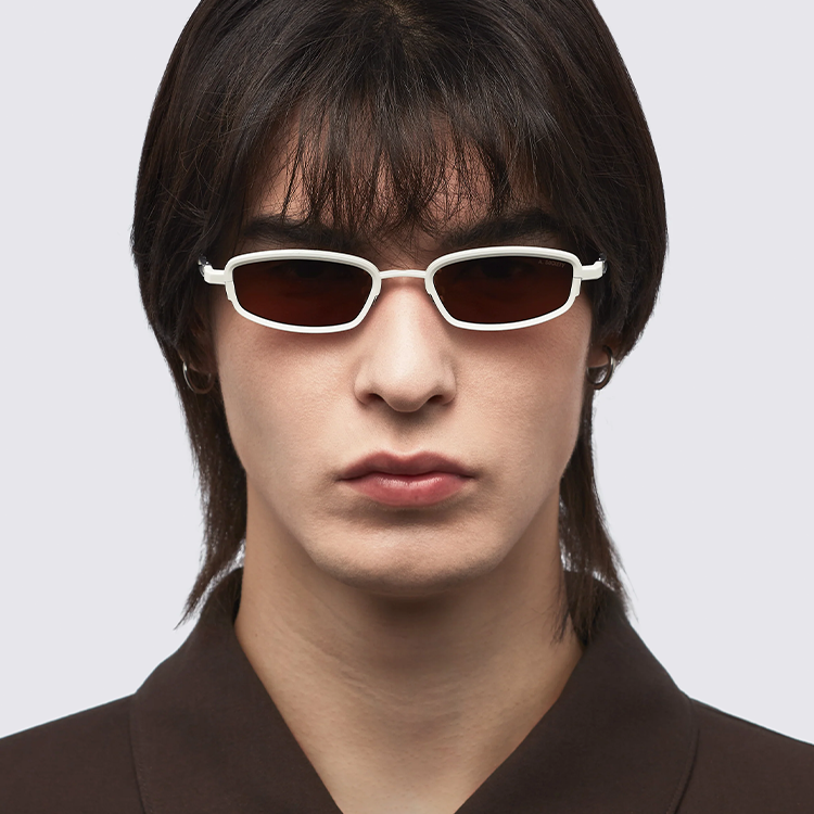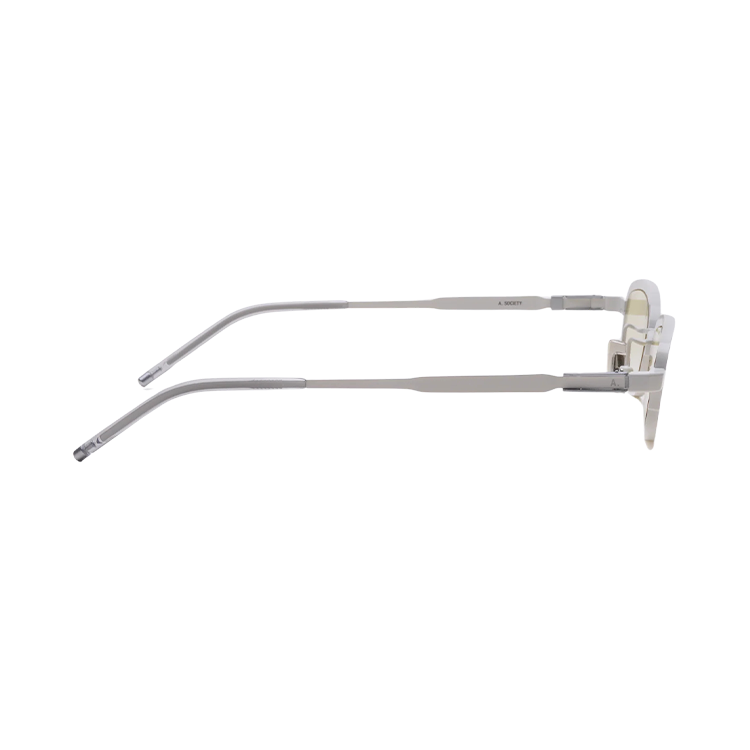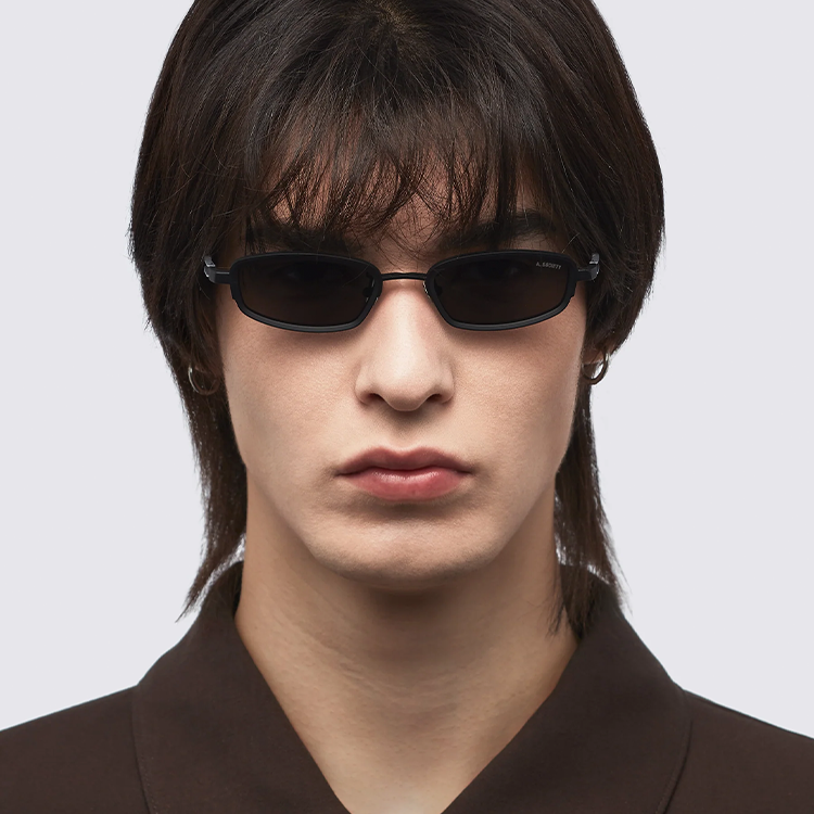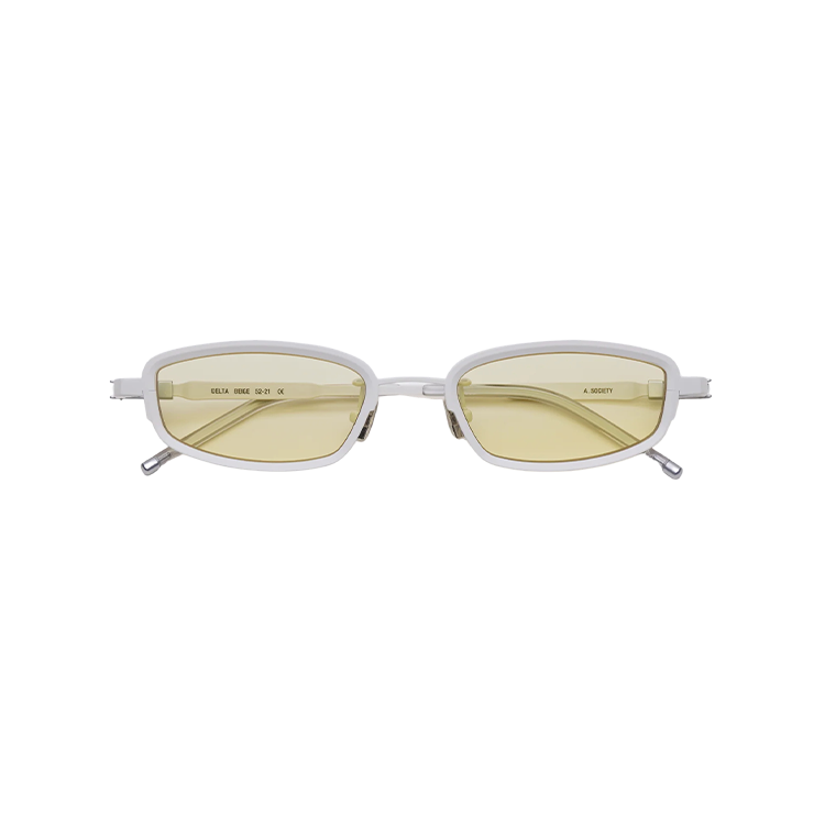 DELTA from A. SOCIETY's Summer 2025 titanium collection showcase a contemporary curved wraparound shape, blending modern design with exceptional comfort. Crafted from lightweight titanium with proprietary screwless hinges and stainless steel temples, these sleek frames offer flexibility and durability. The tinted lenses provide optimal protection and a stylish edge, making a perfect choice for those seeking innovative eyewear that combines advanced technology with bold aesthetics. Available in 3 colourways.