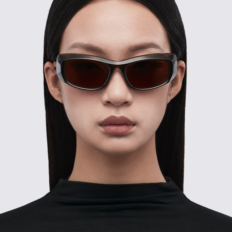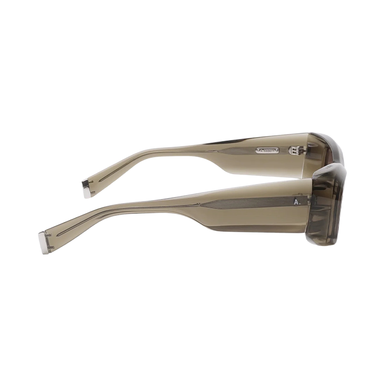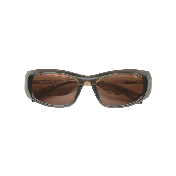 Part of the 2024 collection, these bold rectangular shape features beveled edges and a spoiler on top of the frame and available in dark Olive with brown lenses.